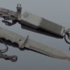 W rękojeści znajduje się zestaw survivalowy – haczyk, żyłka, zapałki, draska, kompas i plaster opatrunkowy.