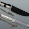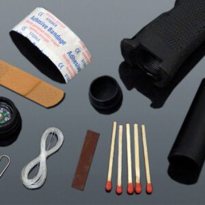 W rękojeści znajduje się kompas, zapałki z draską, nici i haczyk z żyłką.