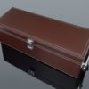 Drewniany kuferek na wino wraz z przyborami do otwierania butelek – kolor BORDOWY