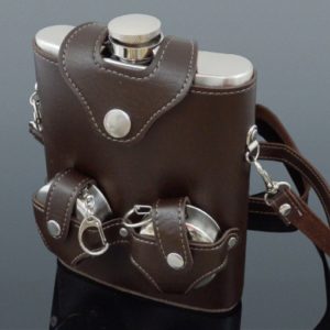 Piersiówka 540ml z dwoma składanymi kieliszkami o pojemności 80ml każdy.
